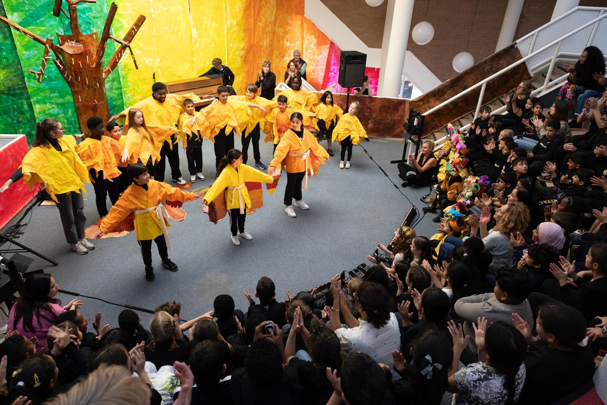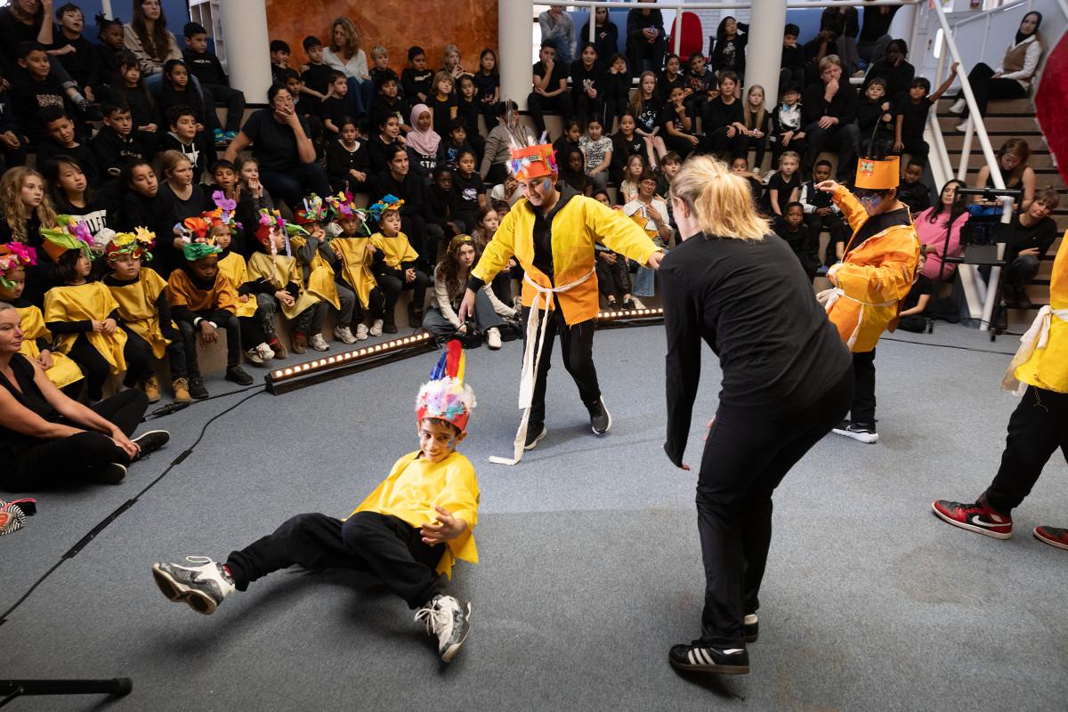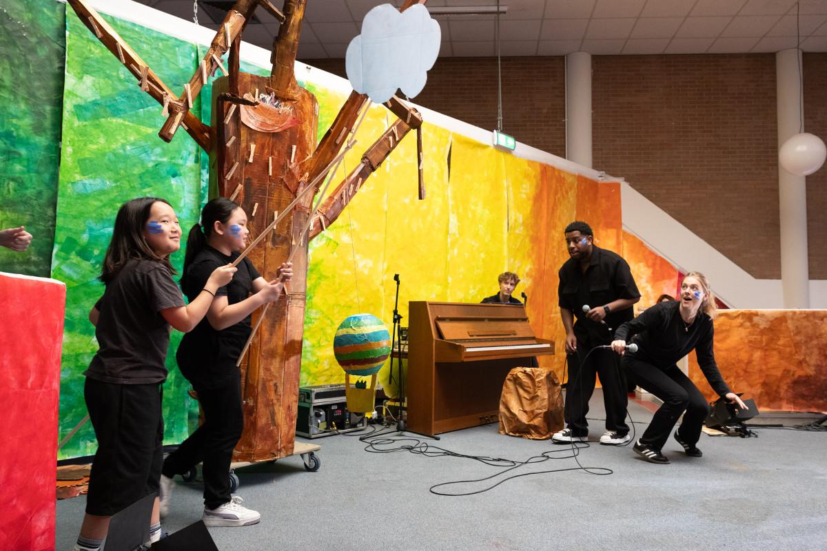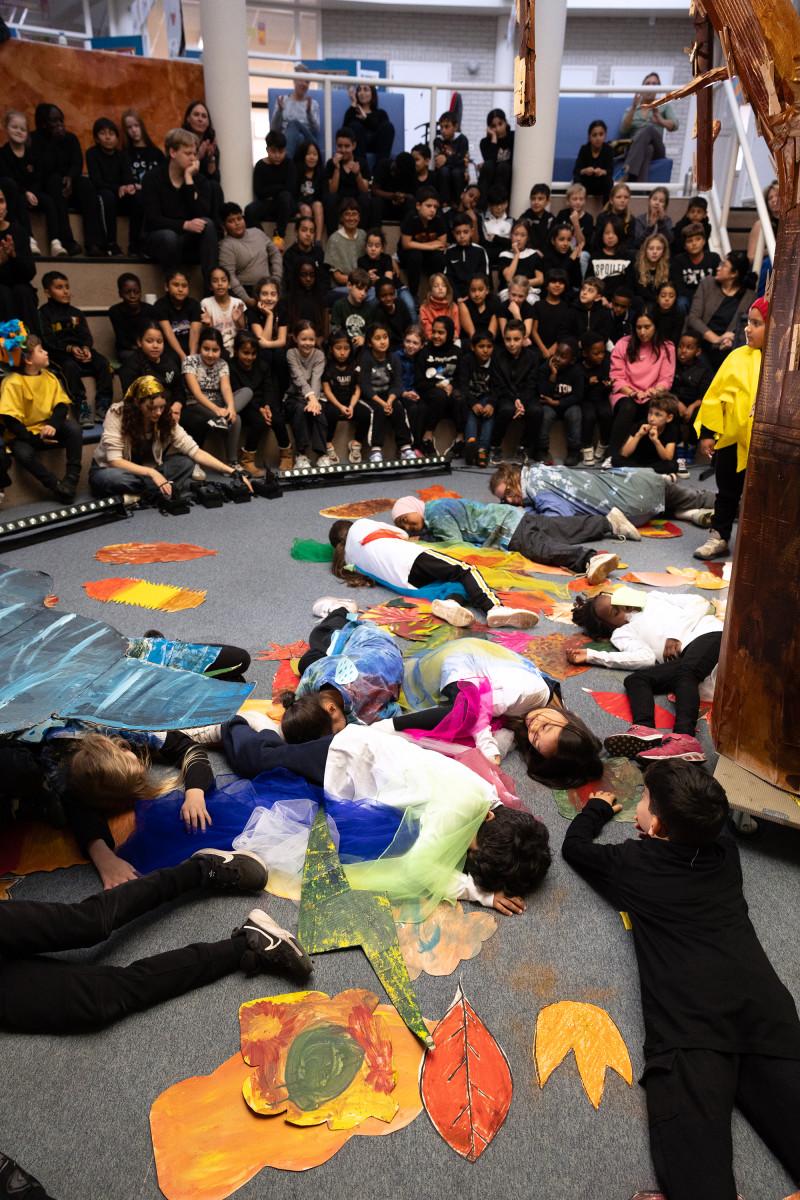 Samen met studenten van de Amsterdamse Toneelschool & Kleinkunstacademie (ATKA) maakten we met de héle school een theatrale voorstelling, geïnspireerd op de mythe van Icarus.
