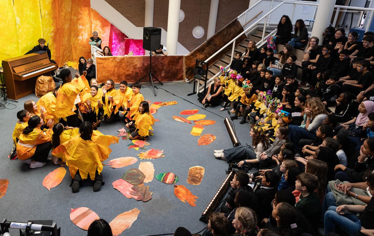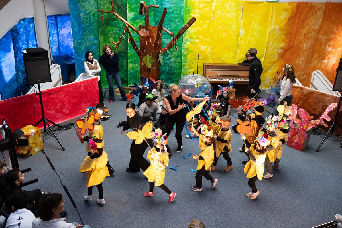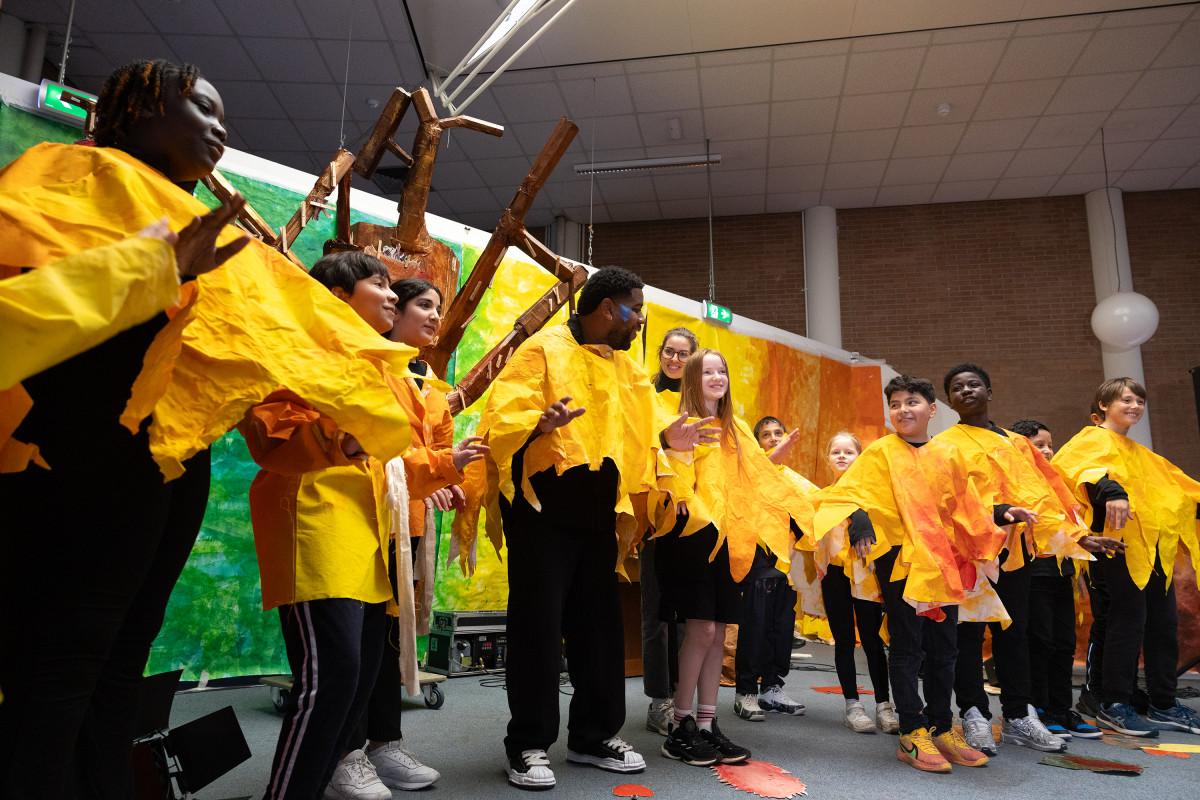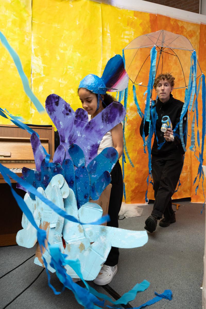 Samen met studenten van de Amsterdamse Toneelschool & Kleinkunstacademie (ATKA) maakten we met de héle school een theatrale voorstelling, geïnspireerd op de mythe van Icarus.